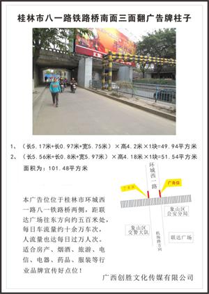 桂林市八一路铁路桥南面三面翻广告牌柱子