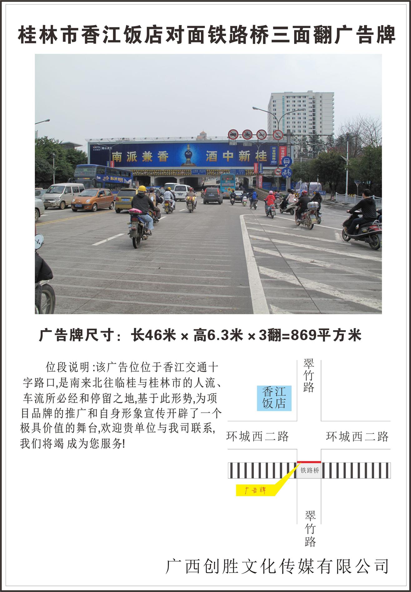 桂林市香江饭店店对面铁路桥三面翻广告牌