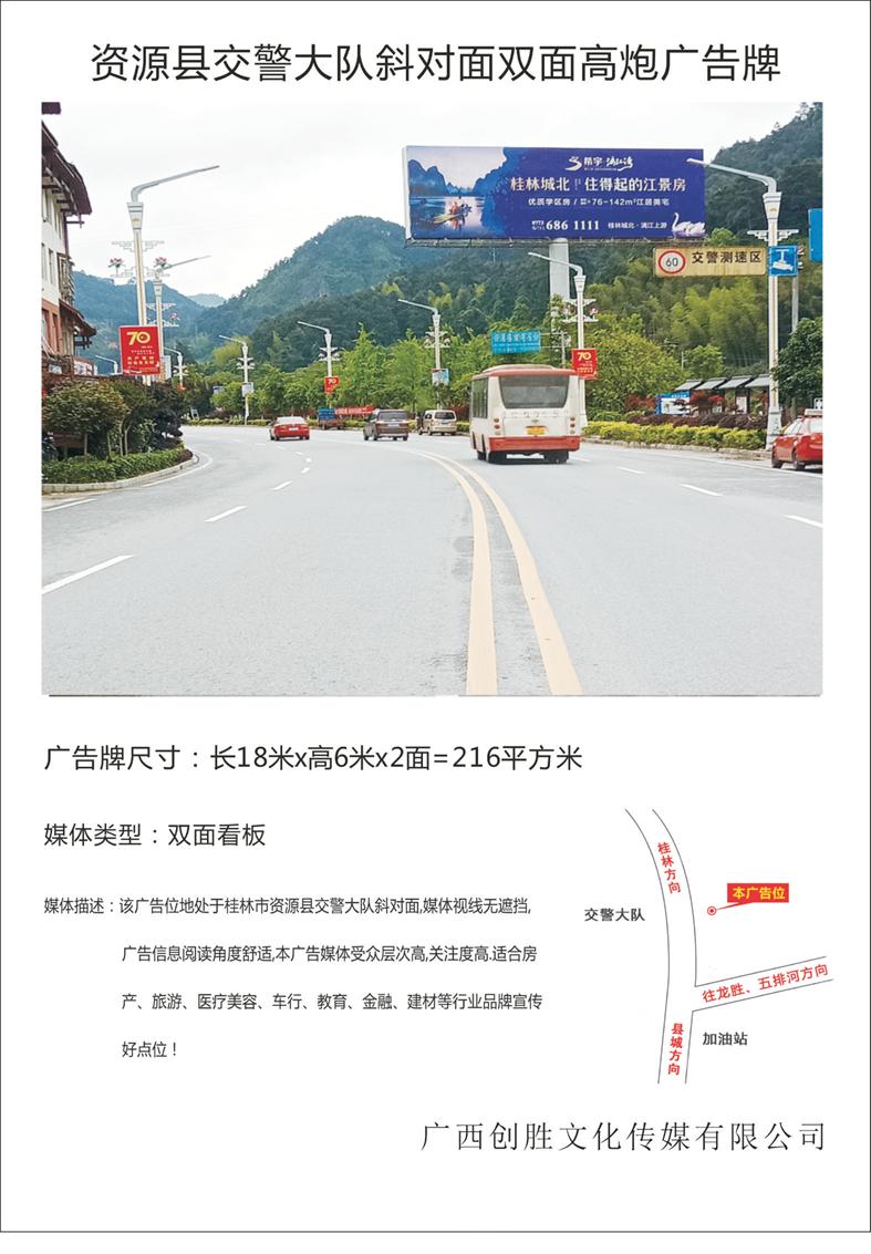 资源县交警大队斜对面双面高炮广告牌