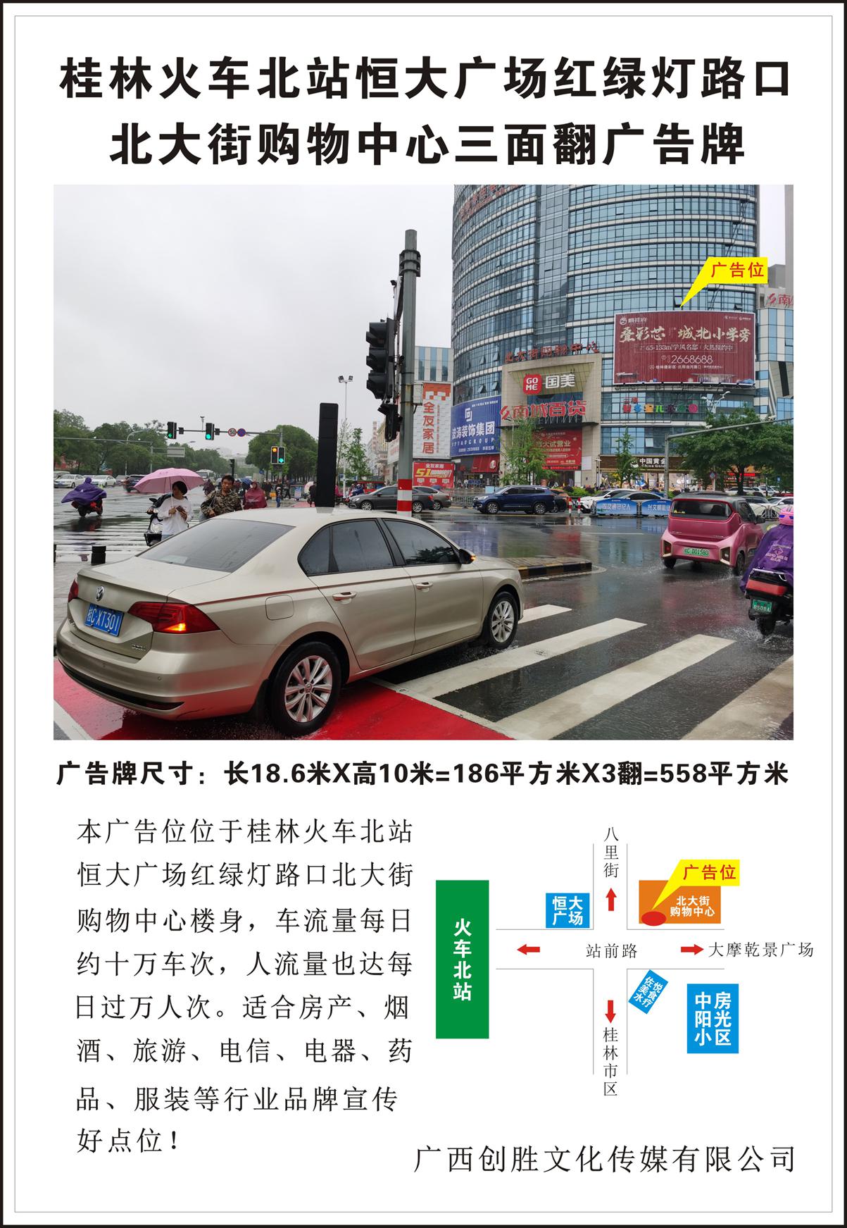 桂林市火车北站恒大广场红绿灯路口北大街购物中心三面翻广告牌